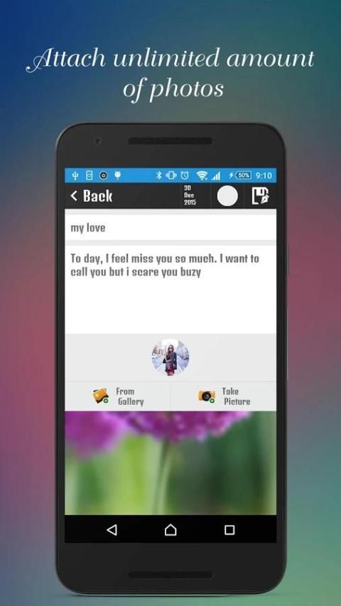 Diary adalah sebuah aplikasi sederhana yang memungkinkan Anda menulis setiap hari pikiran / ide / kenangan dengan antarmuka pengguna yang sederhana. Tambahkan sentuhan visual untuk kenangan Anda melampirkan foto.