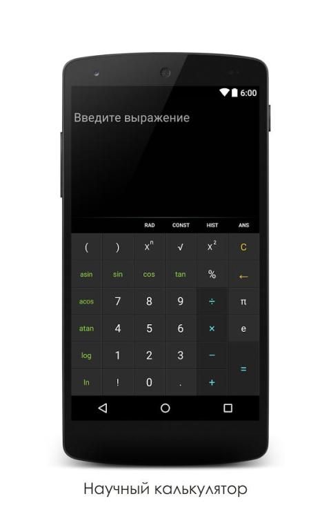 Kalkulator ilmiah bergaya dengan kemampuan untuk mengedit input. Ada daftar built-in konstanta fisik dasar dan sejarah komputasi.