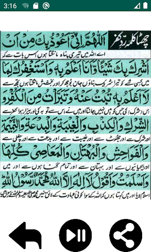 اَللّٰهُمَّ اِنِّیْٓ اَعُوْذُ بِكَ مِنْ اَنْ اُشْرِكَ بِكَ شَيْئًا وَّاَنَآ اَعْلَمُ بِهٖ وَ اَسْتَغْفِرُكَ لِمَا لَآ اَعْلَمُ بِهٖ تُبْتُ عَنْهُ وَ تَبَرَّأْتُ مِنَ الْكُفْرِ وَ الشِّرْكِ وَ الْكِذْبِ وَ الْغِيْبَةِ وَ الْبِدْعَةِ وَ النَّمِيْمَةِ وَ الْفَوَاحِشِ وَ الْبُهْتَانِ وَ الْمَعَاصِىْ كُلِّهَا وَ اَسْلَمْتُ وَ اَقُوْلُ لَآ اِلٰهَ اِلَّا اللهُ مُحَمَّدٌ رَّسُوْلُ اللهِؕ