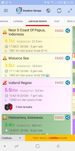 - Laporan pengguna tentang gempa yang dirasakan