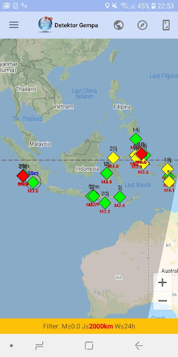 - Data gempa dari jaringan seismik nasional dan internasional mulai dari magnitudo 0,0
