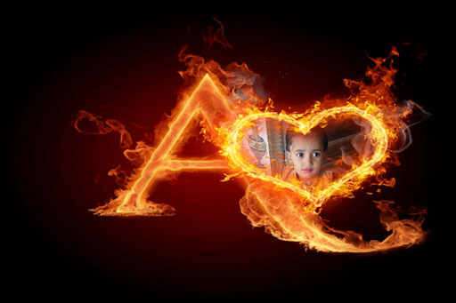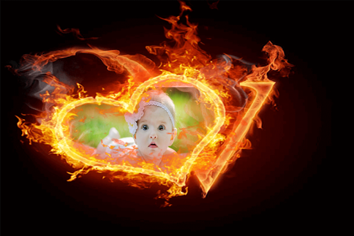 Nama dan nama panggilan dapat ditulis dalam bingkai foto teks api yang indah dan latar belakang foto yang unik.