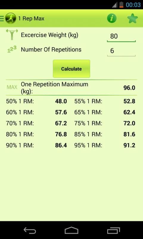 * Satu-rep max (perhitungan berat maksimum untuk satu pengulangan latihan);