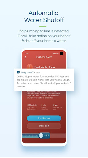 Flo oleh Moen adalah jalur langsung Anda ke keamanan, konservasi, dan tabungan dengan fitur aplikasi utama ini:
