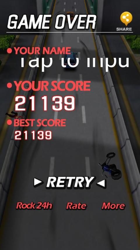 * Kontrol sederhana, drive dengan menekan sisi kanan atau kiri layar.