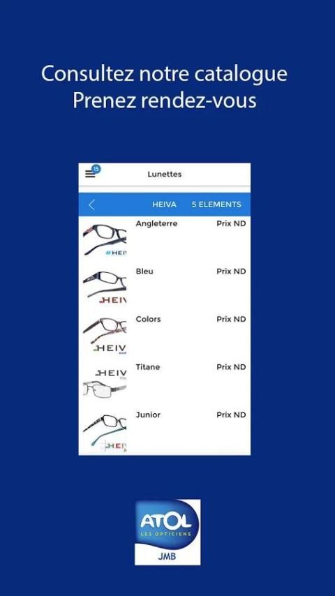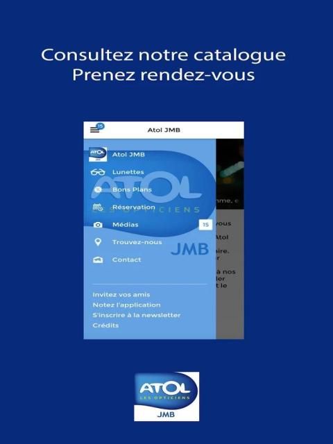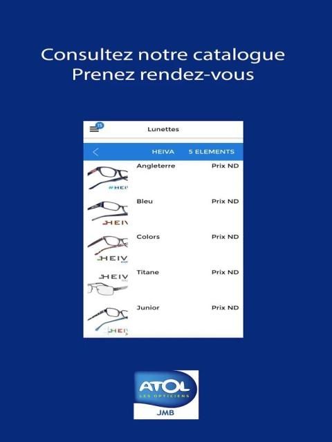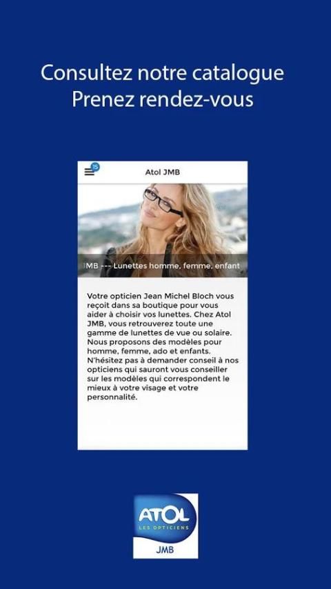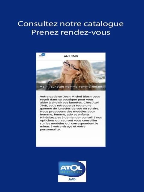 The atol JMB aplikasi Strasbourg menawarkan aplikasi mobile bagi Anda untuk melihat katalog yang ditawarkan oleh pusat optik.