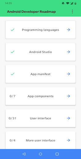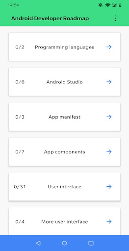 Roadmap pengembang Android berisi banyak subjek pemrograman yang penting bagi setiap pengembang Android.Roadmap pengembang Android juga menawarkan jalur yang disarankan. Bekerja dengan cara Anda dari atas ke bawah untuk mempelajari pengembangan Android.