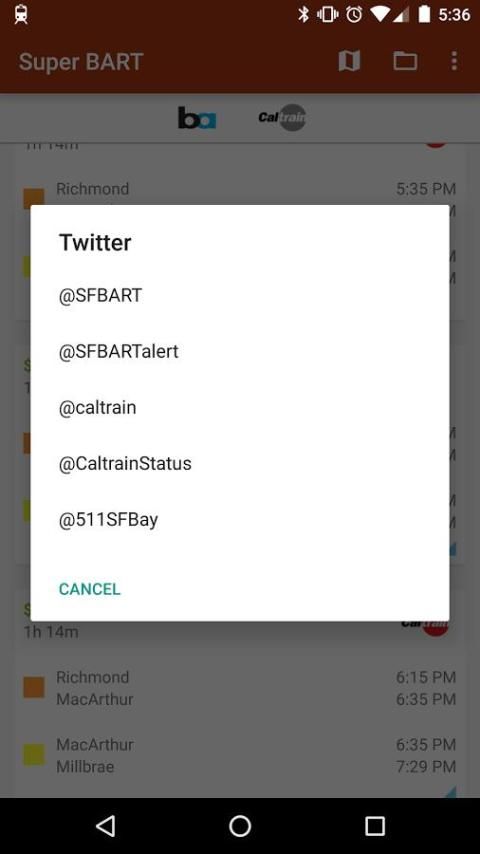 Super BART adalah BART dan Caltrain jadwal bersih dan sederhana yang dapat Anda akses di mana saja, kapan saja. Cukup pilih kapan dan di mana Anda ingin pergi.