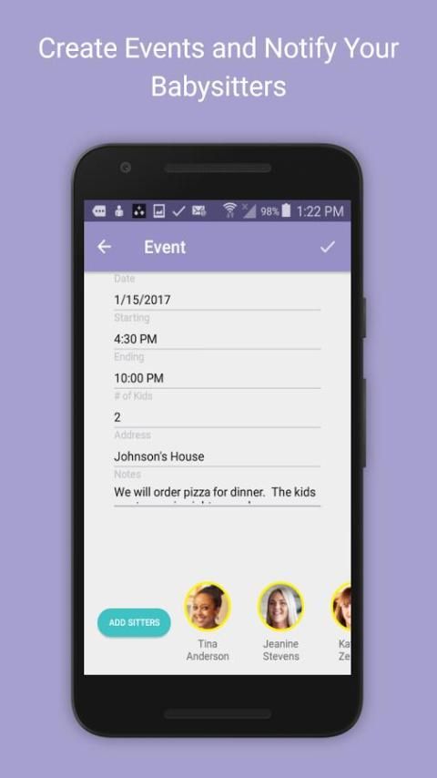 Membuat acara dan langsung memberitahukan babysitter Anda