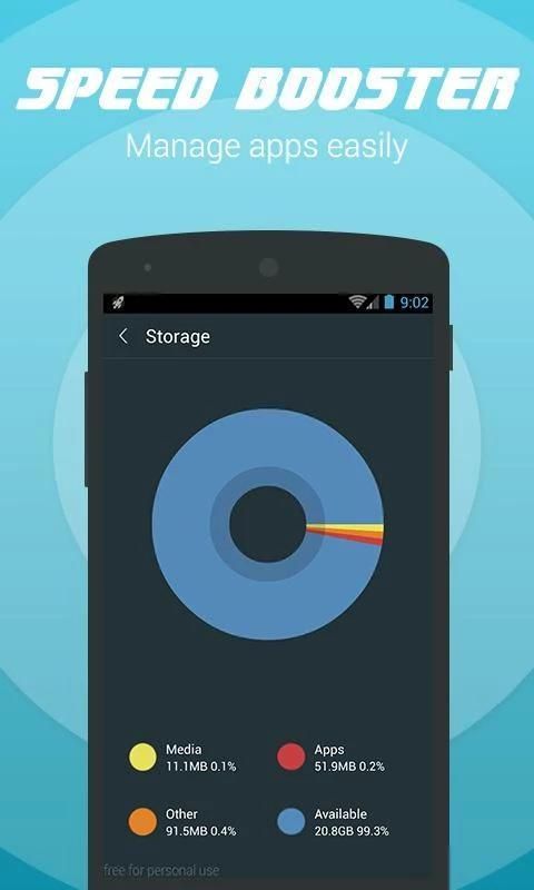 Speed Booster membebaskan RAM memungkinkan perangkat untuk berjalan lebih cepat. Menghapus file sampah, cache ... setelah digunakan waktu yang lama. Hal ini juga memberikan kemampuan untuk mengelola aplikasi membantu menghilangkan, menghapus data aplikasi lebih cepat diinstal di komputer Anda.