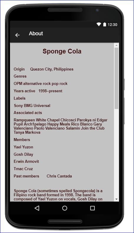 Dapatkan info tentang Sponge Cola wikipedia, Tour Dates Concert, penyanyi media sosial Facebook Fanpage, Twitter Fanpage, Chat dengan Sponge Cola Fanclub, Memo untuk Notes, kalender acara. Bermain Lagu dengan aliran secara online dan lirik di Music Sponge Cola.