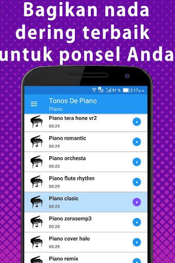 Nada Piano terbaik untuk ponsel Anda secara gratis di aplikasi nada dering ini di mana Anda akan menemukan instrumen universal terbaik dari Afrika dan Asia Tenggara. Suara Piano Suara untuk panggilan, dalam aplikasi ini Anda akan menemukan pesan untuk mengunduh melodi piano untuk ponsel, suara piano untuk ponsel gratis untuk panggilan, di mana Anda dapat mendengarkan semua nada modis. pianis. Mereka menekankan tokoh-tokoh seperti Frédéric Chopin, Franz Liszt, Wolfgang Amadeus Mozart, Ludwig van Beethoven, Claude Debussy atau Piotr Ilyich Tchaikovsky