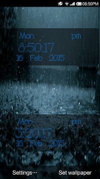 Rain Digital Clock LWP: Enhance your smart screen with the latest Digital Clock Widget cum Live Wallpaper. This App provides dual clock with Country Time zones. Feel the natural Effect on your smartphone.Tested on major Android device.
