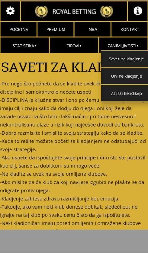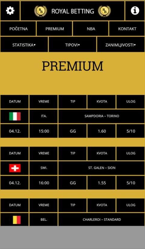 Royal Bettiing adalah aplikasi yang komprehensif yang membantu dalam prediksi olahraga, di mana Anda dapat mengikuti statistik lengkap dengan hari, minggu dan bulan, dan di mana Anda dapat mengikuti atraksi terbaru di daerah ini.