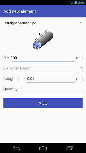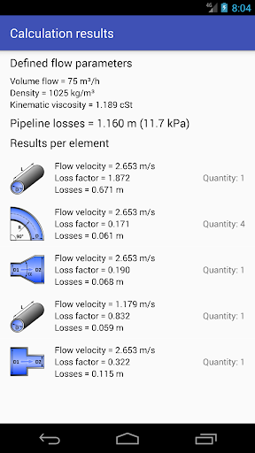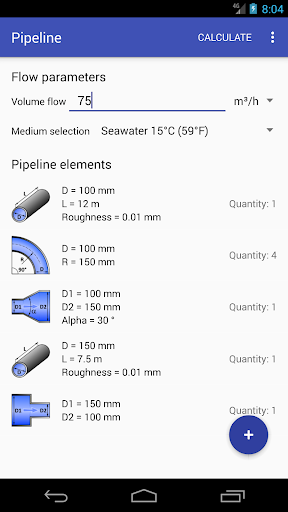 App calculates pressure drop in pipeline with different elements such as straight pipes, bends, enlargements, contractions and others