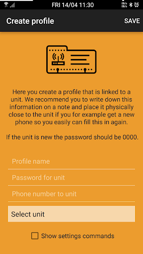 Harap perhatikan bahwa aplikasi menggunakan SMS untuk mengontrol unit dan bahwa setiap SMS yang dikirimOleh aplikasi akan dibebankan oleh operator Anda seperti SMS reguler.