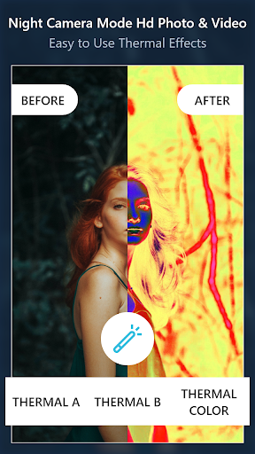 dari aplikasi ini Anda juga dapat menggunakan Efek termal Gunakan aplikasi ini untuk menjelajahi dunia Anda dalam realitas virtual dengan efek termal dan mengambil foto dengan efek penglihatan termal inframerah predator.Anda juga dapat mengatur timer dalam efek termal sebelum mengklik foto, atau Anda dapat mengatur warna efek termal, menambahkan senter, dan banyak lagi efek filter yang diberikan Anda dapat mengaturnya saat Anda mengklik foto.