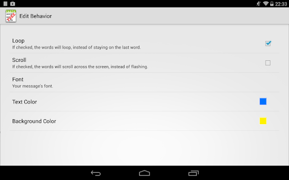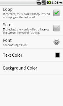 Y.A.S.T.A. displays messages on your device's screen. It can either scroll the message across the screen, or flash the words one at a time.