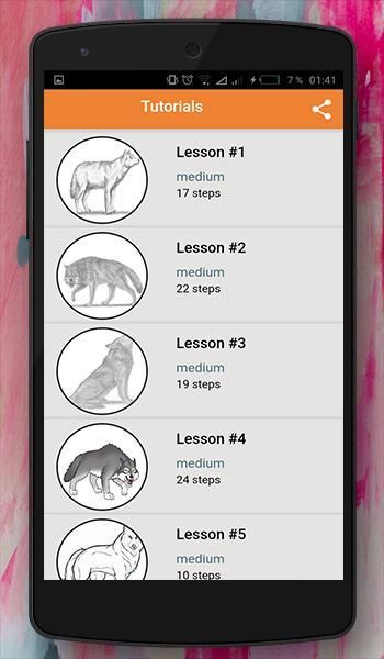 Dalam aplikasi menggambar ini, kami akan menunjukkan cara menggambar kepala serigala, serigala kartun, mata serigala, serigala anime, serigala wajah, bayi serigala langkah mudah. Ini langkah demi langkah Gratis pelajaran progresif dibangun berdasarkan setiap langkah sebelumnya sampai Anda mendapatkan rendering akhir dari Wolves.