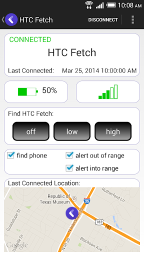 HTC Fetch adalah tag "temukan saya" dengan desain FOB kunci ramping yang ramping yang dapat dilampirkan ke objek apa pun dalam jarak telepon Ready Smart Bluetooth Anda. Gunakan HTC Fetch untuk menemukan ponsel Anda atau barang-barang yang salah tempat dan barang berharga lainnya seperti kunci atau dompet Anda. Menyediakan "tali elektronik" dan memberi tahu Anda ketika objek berada di luar jangkauan atau saat kembali ke jangkauan. Menghemat lokasi terakhir yang diketahui saat terhubung dan menampilkan lokasi pada peta.