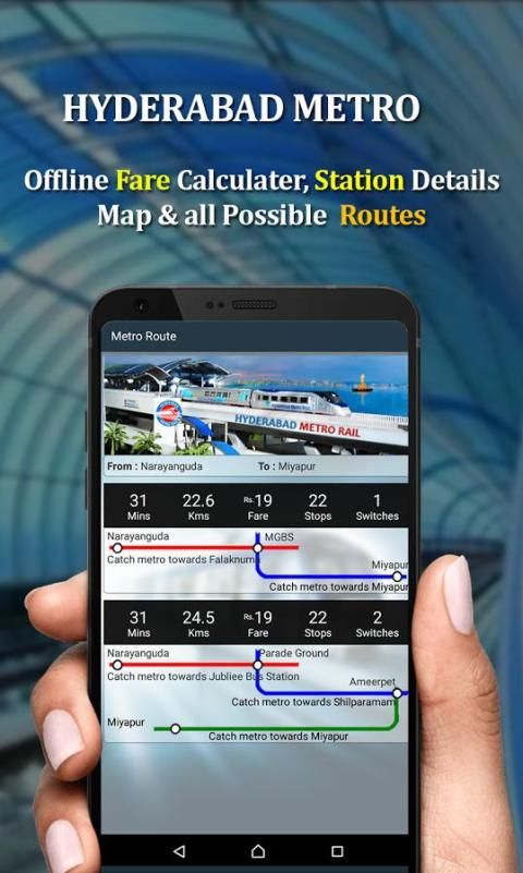 aplikasi Hyderabad Metro Rail menyediakan pelanggan layanan metro dengan banyak informasi yang berguna yang membantu dalam menggunakan Layanan Metro seperti Route Antara Stasiun (dengan tarif, jarak, jumlah stasiun) Stasiun Info, stasiun metro terdekat, Hyderabad Tour panduan,