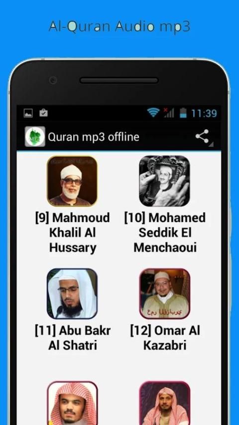 reciters tersedia adalah lebih dari 20, yang paling terkenal adalah: Sura Qaf, Sura Al Dhariyat, Sura Al Tur, Sura Al Najm, Sura Al Qamar, Sura Al Rahman, Sura Al Waqiah, Sura Al Hadid, Sura Al Mujadalah, Sura Al Hasyr, surah Al Mumtahanah, surah Al Saff, surah Al Jumuah, surah Al Munafiqun, surah Al Taghabun, surah Al Talaq, surah Al Tahrim, surah Al Mulk, surah Al Qalam, surah Al Haqqah, surah Surah Al-Ma'arij, Sura Nuh, surah Al jin , Sura Al Muzammil, Sura Al Mudaththir, Sura Al Qiyamah, Sura Al Insan, Sura Al Mursalat, Sura Al Naba, Sura Al Naziat, Sura Abasa, Sura Al Takwir, Sura Al Infitar, Sura Al Mutaffifin, Sura Surah Al-Insyiqaq, Sura Al Buruj, Sura Al Tariq, Sura Al Ala, Sura Al Ghasiyah, Sura Al Fajr, Sura Al Balad, Sura Al Shams, Sura Al Layl, Sura Al Duha, Sura Surah Al-Insyirah, Sura Al Tin, Sura Al Alaq, Sura Al Qadr, surah Al Bayyinah, surah Al Zalzala, surah Al Adiyat, surah Al Qariah, surah Surah At-Takasur, surah Al Asr, surah Surah Al-Humazah, surah Al Fil, Sura Quraisy, surah Al Maun, surah Al Kawthar, surah Al Kafirun, surah Al Nasr , Sura Tabbat, Sura Al Ikhlas, Surat Al Falaq, Sura Al Nas, Sura Yunus, Sura Hud, Sura Yusuf, Sura Al Rad, Sura Ibrahim, Sura Al Hijr, Sura Al Nahl, Sura Bani Israil, Sura Al Kahfi, Sura Maryam , Sura Ta Ha, Sura Al Anbiya, Sura Al Hajj, Sura Al Muminin, Sura Al Nur, Sura Al Furqan, Sura Al Shuara, Sura Al Naml, Sura Al Qasas, Sura Al Ankabut, Sura Al Rum, Sura Luqman, Sura Al Sajdah, Sura Al Ahzab, Sura Al Saba, Sura Al Malaika, Sura Ya Sin, Sura Al Saffat, Sura Al Sad, Sura Al Zumar, Sura Al Mumin, Sura Ha Mim, Sura Al Syura, Sura Al Zukhruf, Sura Al Dukhan, surah Al Jatsiyah, surah Al Ahqaf, Sura Muhammad, Sura Al Fath, surah Al Hujurat