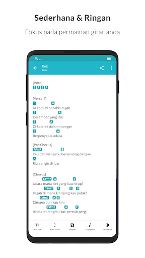 Mainkan lagu favorit kamu dengan ribuan kunci gitar gratis yang bisa disimpan secara offline. Tersedia ribuan kunci gitar lagu Indonesia atau luar negeri. Bisa dimainkan untuk gitar, keyboard, ukulele, piano, bass, mandolin, biola, dll. Berisi bermacam kunci gitar dari bermacam genre, band, dan artis.