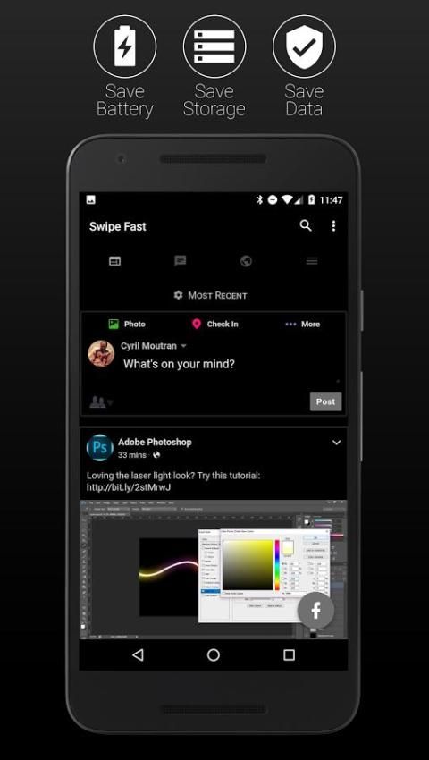 Ini adalah sebuah alternatif client Facebook yang sangat baik yang memungkinkan Anda menyimpan banyak ruang pada perangkat Anda.