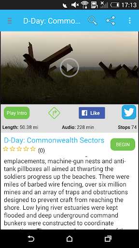 This GPS guided audio tour of 74 locations with nearly 4 hours of audio, which highlights the British and Canadian sectors of Operation Overlord, the D-Day invasion. A second tour covers the American sections of the Normandy invasion, to the west.