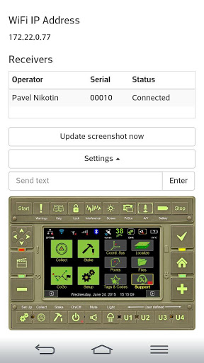 The application waits for connections from LS. For setting up connection, please follow Support -> Remote Assistance on your TRIUMPH-LS and setup connection to the built-in server. Select Custom Server, specify IP address of the Mobile device, port 8800, and click Connect.