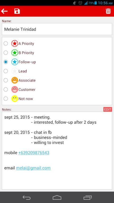 * save unlimited contacts, phone numbers, email addresses and prospecting notes