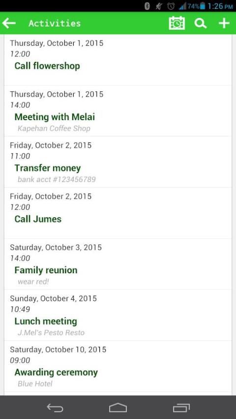 ACTIVITIES is where you organize your daily activities and events. Organize your life around your dreams, and watch them come true.