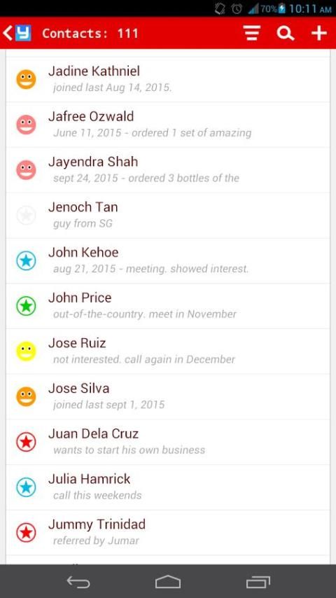 CONTACTS is where you list down all your prospects and leads. Prospect list is the bread and butter of sales industry. Save time and money by pursuing only the right people. Categorize them and write special notes about your prospects. Got rejected? Smile, and categorize them as "Not now". In their perfect timing, they will be categorized as your "Customer".