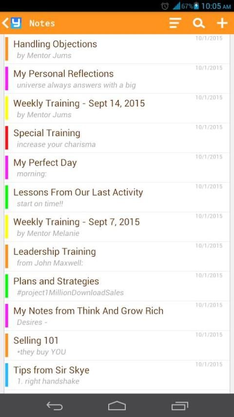 NOTES is where you take down notes from seminars, trainings and coaching sessions you attended. Experience is the best teacher. Write down your experiences and the lessons you have learned. Apply them the next time you talk with your prospects.
