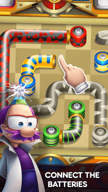 Travel through a colourful world of vibrant and wacky gadgets. Connect matching batteries and cover the board with tubes to complete buzzing puzzles and venture further into the magical machine park.