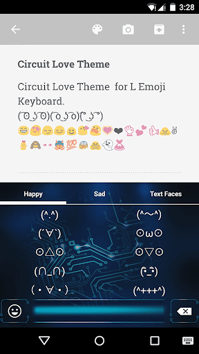 L Emoji Keyboard is a free, smart and colorful Emoji Keyboard for Android that help you to fast input over 3000 emoji, emoticons, smiley, sticker and text face conveniently everywhere including message, text, email and chat with social app etc. It’s the best Emoji Keyboard for Android with over 100 beautiful themes, smart gesture type and auto correct, highly customization with color, layout, font and over 55 languages support.