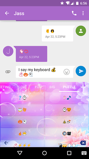 KK Emoji Keyboard is a free, smart and colorful Emoji Keyboard for Android that help you to fast input over 3000 emoji, emoticons, smiley, sticker and text face conveniently everywhere including message, text, email and chat with social app etc. It’s the best Emoji Keyboard for Android with over 100 beautiful themes, smart gesture type and auto correct, highly customization with color, layout, font and over 55 languages support.