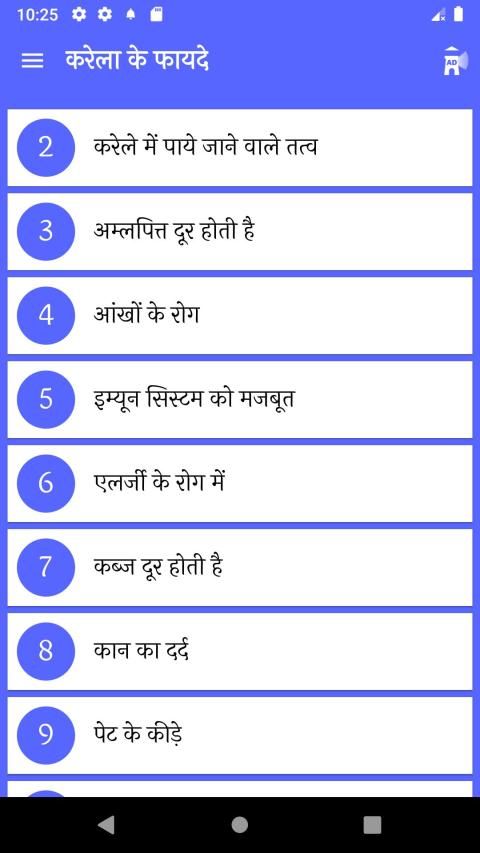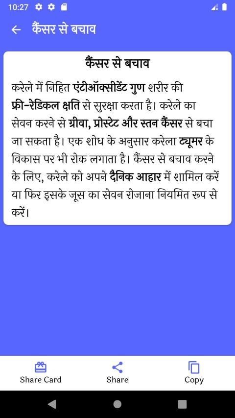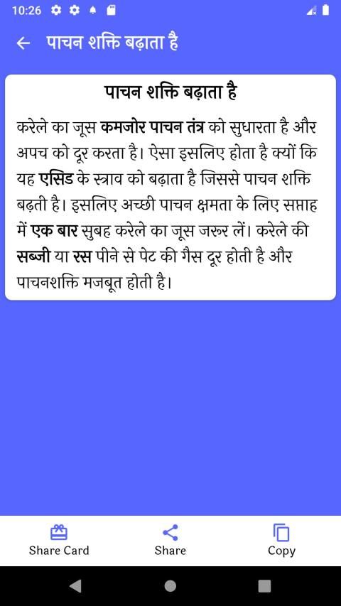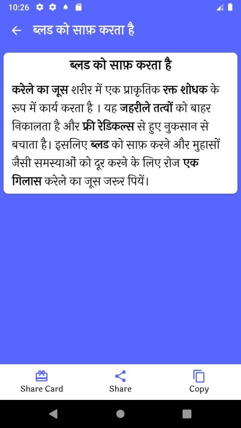 ऍप में करेला के 50+ फायदों को विस्तार से बताया गया है।