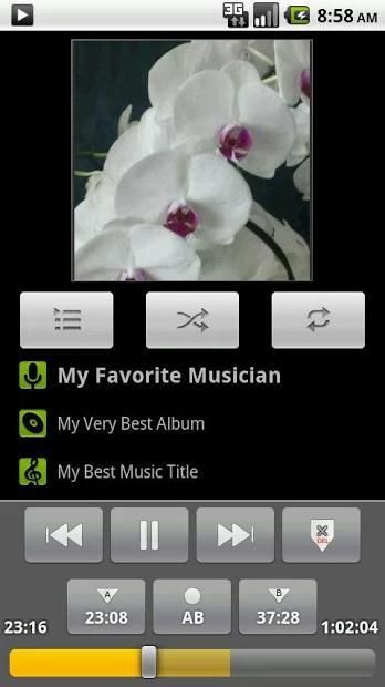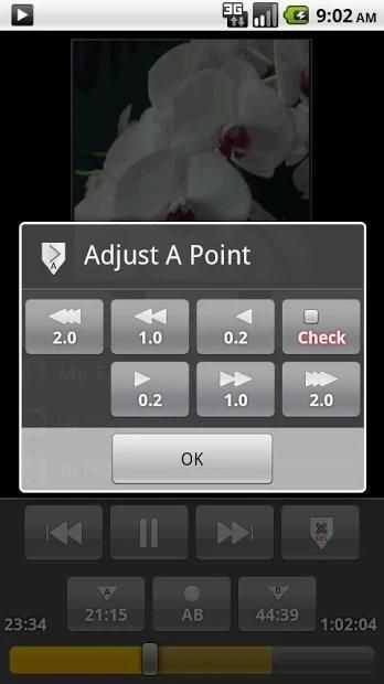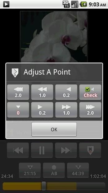 AB Mengulangi (mengulangi ditetapkan pengguna bagian dari audio atau antara A dan titik B), Langsung, Bookmarks adalah fitur penting untuk setiap pelajar bahasa asing. Ini juga sangat berguna untuk musik, tari atau trainee tai-chi. Versi 4.x.x menambahkan kotak pesan baru untuk Audio Kecepatan dan Equalizer.