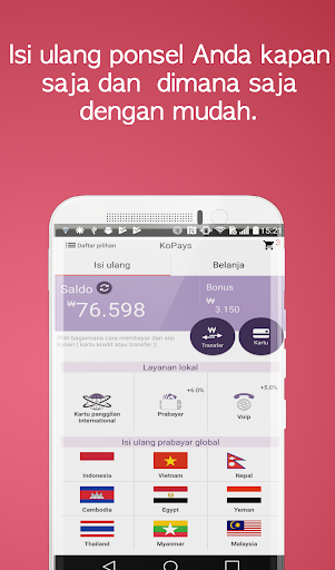 - kirim isi ulang ke semua ponsel prabayar di (Indonesia, Vietnam, Nepal, Kamboja, Mesir, Yaman, Thailand dan Malaysia )