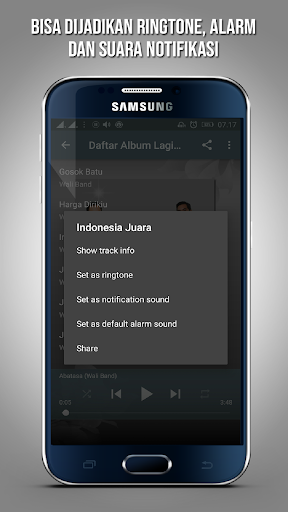 - Hak cipta seluruh lagu pada aplikasi ini adalah milik pencipta, musisi dan label musik yang bersangkutan. Jika anda adalah pemegang hak cipta lagu yang ada di aplikasi ini dan tidak berkenan lagu anda ditampilkan, silahkan hubungi kami melalui email developer dan beritahu kami tentang status kepemilikan anda atas lagu tersebut. Kami akan langsung menghapus lagu tersebut.