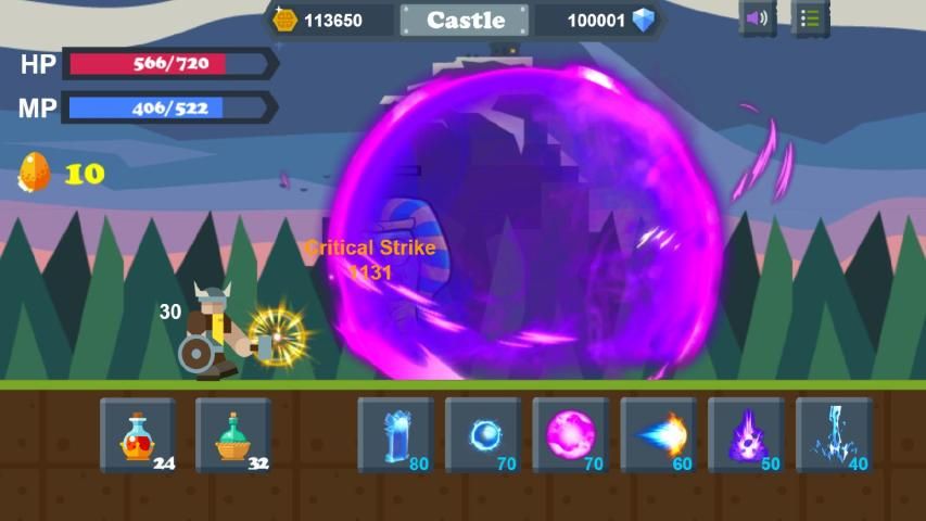 Viking Town had been invaded by three powerful ancient demons and their slaves. The king was old, and his power was not enough, so he call all the heroes together and you are one of them. Tomorrow you will be on the road to fight for your town.Do not ruin your honor, hero! Fight!