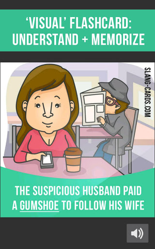 di aplikasi kami Anda akan menemukan 500 kartu flash yang berisi kata-kata slang Amerika dan Inggris, contoh kalimat, gambar dan pengucapan yang benar.