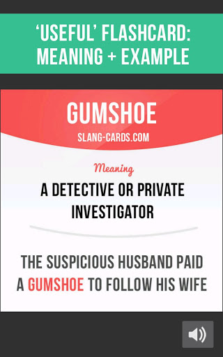 1. Flashcard 'berguna' menunjukkan kepada Anda kata slang, artinya dan contohnya.