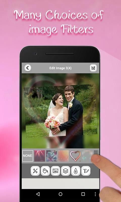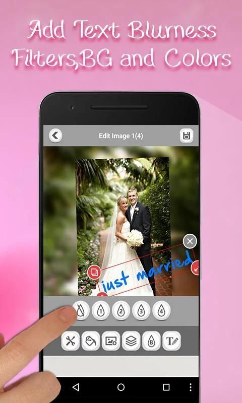 - Tambahkan stiker pernikahan secara individual untuk setiap foto yang dipilih.