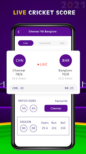 Aplikasi ini menyediakan skor langsung semua kriket dengan beberapa fungsiAplikasi seperti T20, Off dan Test Matches skor tersedia.
