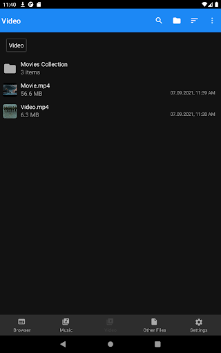- pemutar video bawaan untuk memutar video Anda di dalam aplikasi.