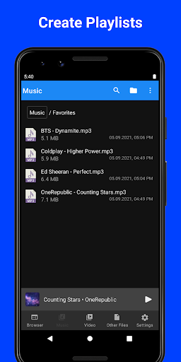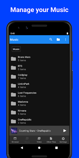 MyMedia adalah pengunduhan dan manajer file yang kuat yang memungkinkan Anda memutar musik dan video secara offline.Anda dapat mengunduh file, memutar, mengelola, mengatur, dan mengekspornya ke aplikasi lain.