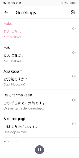 - Anda dapat mendengarkan frase dan kosakata bahasa Jepang saat aplikasi di latar belakang.
