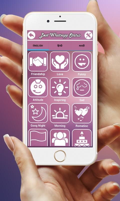 Ada begitu banyak status yang tersedia dalam kategori yang berbeda seperti Status sikap, status hilang, status romentic, status naksir, status pagi, status cinta, shayari dan banyak lagi dll;